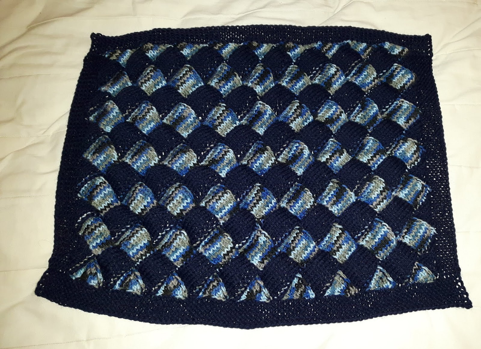 Another baby blanket has dripped from the needles. I'm loving entrelac, the way it allows you to combine two colours is just wonderful. And it seems to work well for a yarn with a really short colour sequence. I know that if I tried to do a long row with the Twilight colourway it would just look like a mess but in short rows it works nicely.